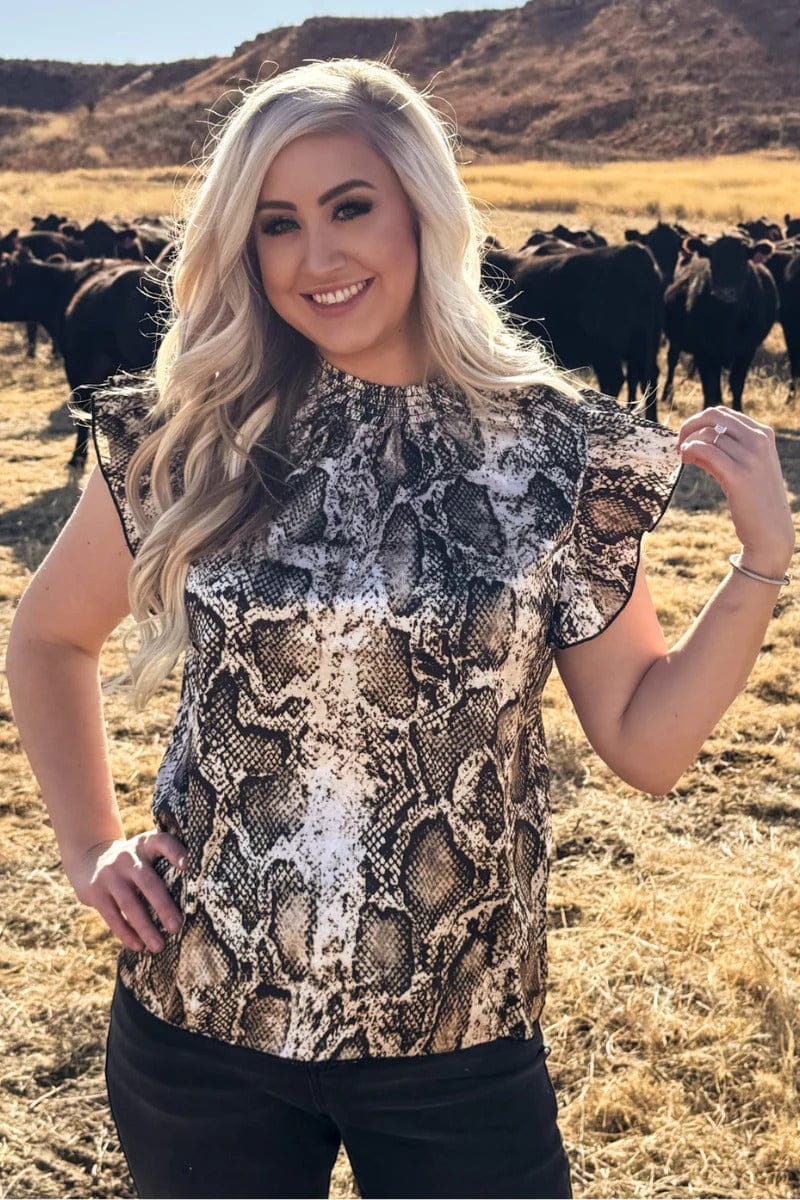 Slither into style with this cheeky babydoll top featuring bold snake print that's anything but boring. The relaxed fit and flowy silhouette keep things fun and flirty, while the eye-catching pattern does all the talking. Perfect for layering or wearing solo, this playful piece brings a touch of wild confidence to your everyday look. Embrace your inner serpent and make a statement that's totally hiss-terical.