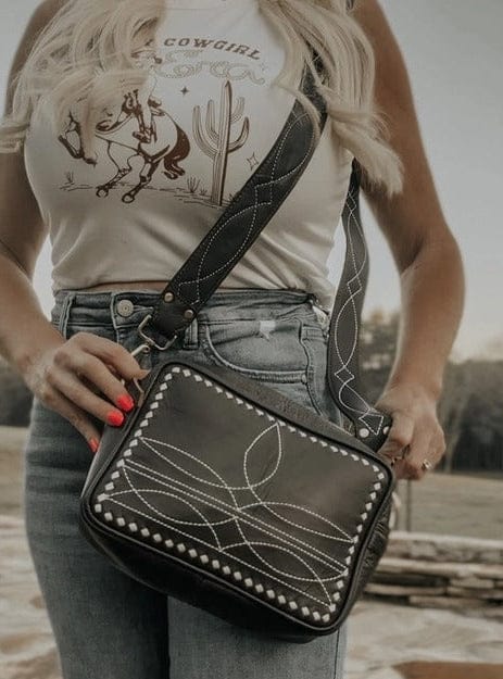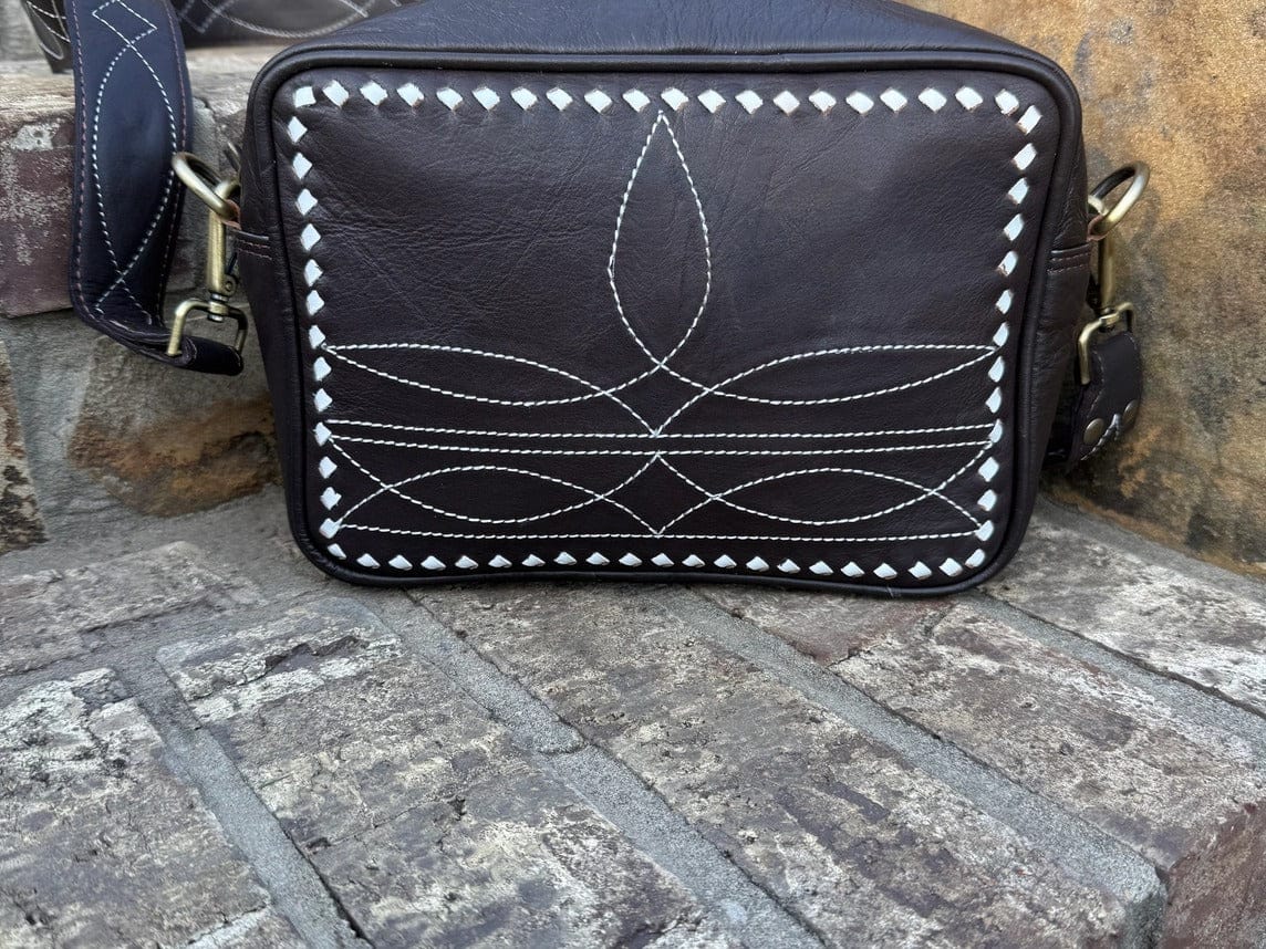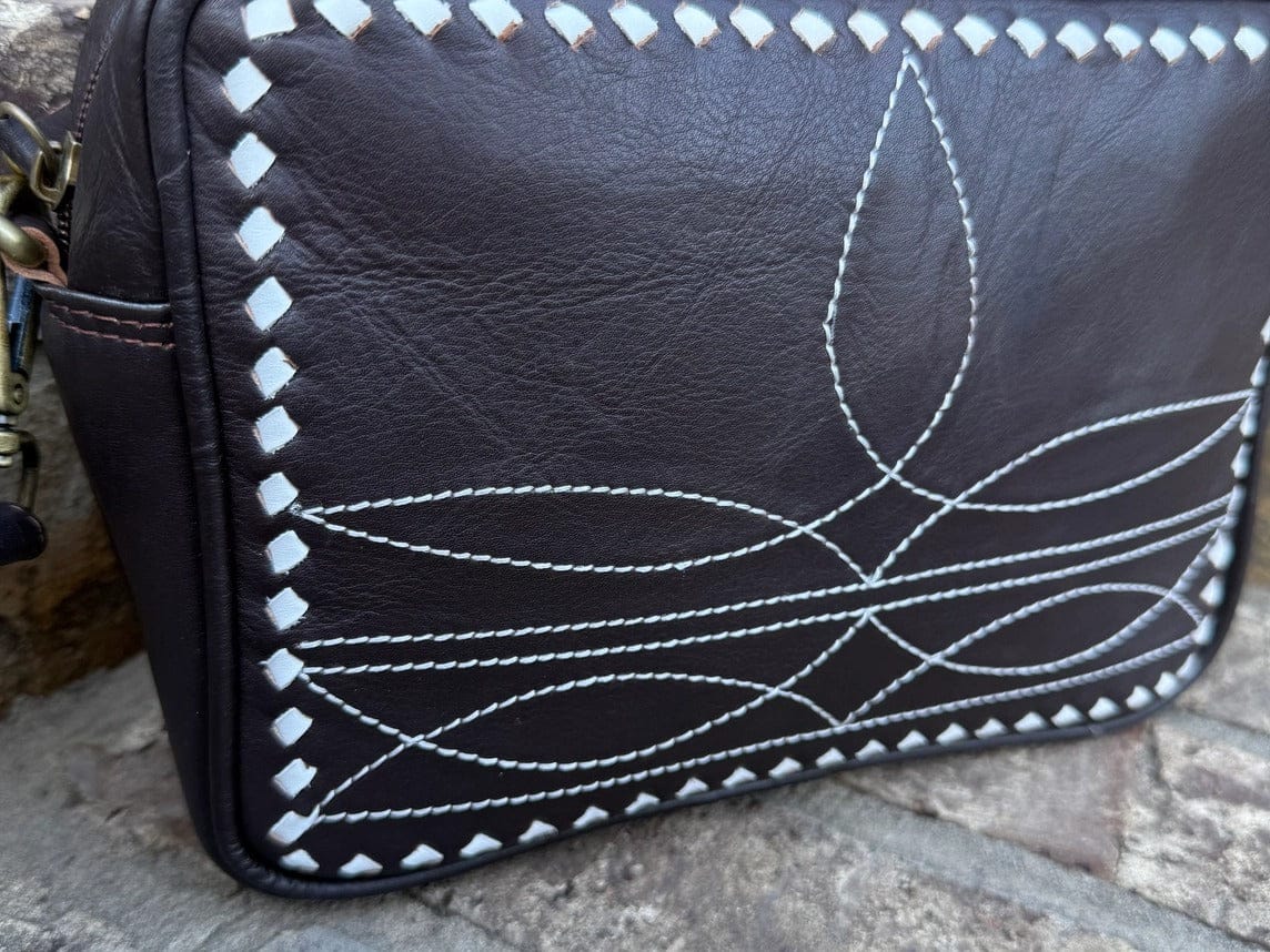 This boot stitch leather purse blends classic western detail with everyday function. The front features a signature boot-stitch design, while hand-stitched leather sides add durability and artisan character. A stitched shoulder strap completes the look with an extra touch of craftsmanship, and the interior zipper pocket keeps your essentials neatly organized. Pair it with the matching boot-stitched wallet for a perfectly coordinated set (wallet sold separately).