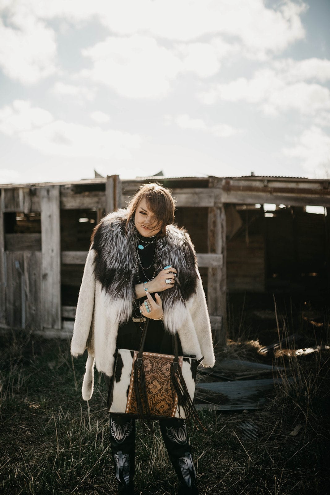 Due to the nature of genuine cowhide every purse will be one of a kind as each purse will be made with a unique cowhide piece. Branding logo may be light or dark brown.