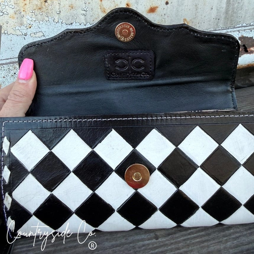 The Dalton Checkered Leather Wallet Wristlet blends timeless western charm with everyday function. Crafted from genuine leather, this sleek wristlet features a secure snap closure and a thoughtfully designed interior to keep you organized in style.