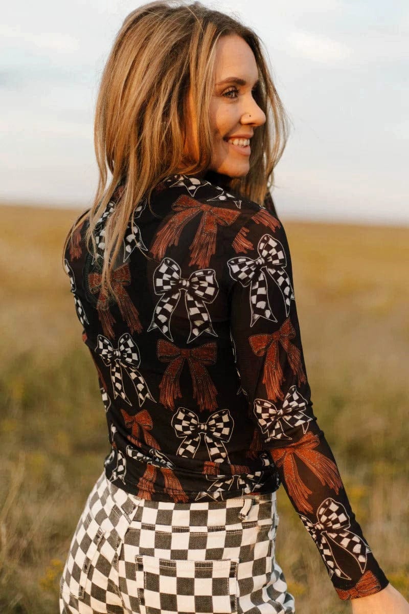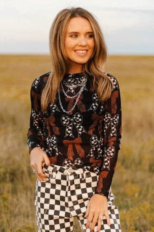 Get ready to feel absolutely adorable in our Just A Girl Mesh Top! Made with cute, comfy and stretchy fabric, this top features charming checkered and tooled bows, making it the perfect addition to any outfit. Embrace your inner cuteness with this must-have top!
