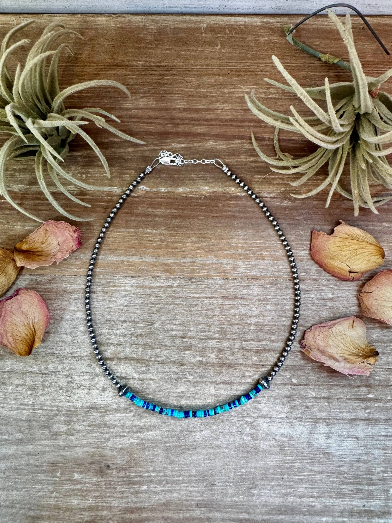 Lapis & Turquoise Heishi Choker – 14" Sterling Silver Beads