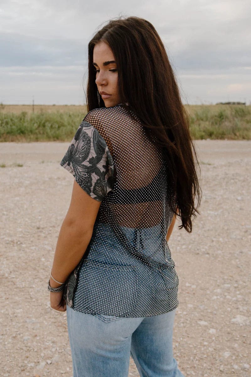 The Love Is Like A Butterfly Top features a sparkling netted rhinestone back that catches the light beautifully. Its charming butterfly pattern adds a playful and feminine touch, making it perfect for those who want to stand out with a fun and elegant style. This top effortlessly combines sparkle and whimsy for a look that’s both cute and captivating.