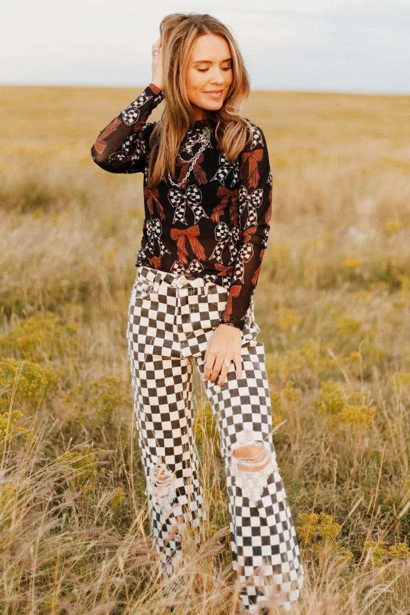 Stand out effortlessly with the Round The Track Jeans, featuring a distinctive faded black and white checkered pattern and stylish distressed holes at the knees. Designed to combine bold fashion with comfort, these jeans are the perfect choice to upgrade your wardrobe and showcase your confident, trend-savvy side.
