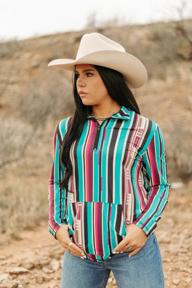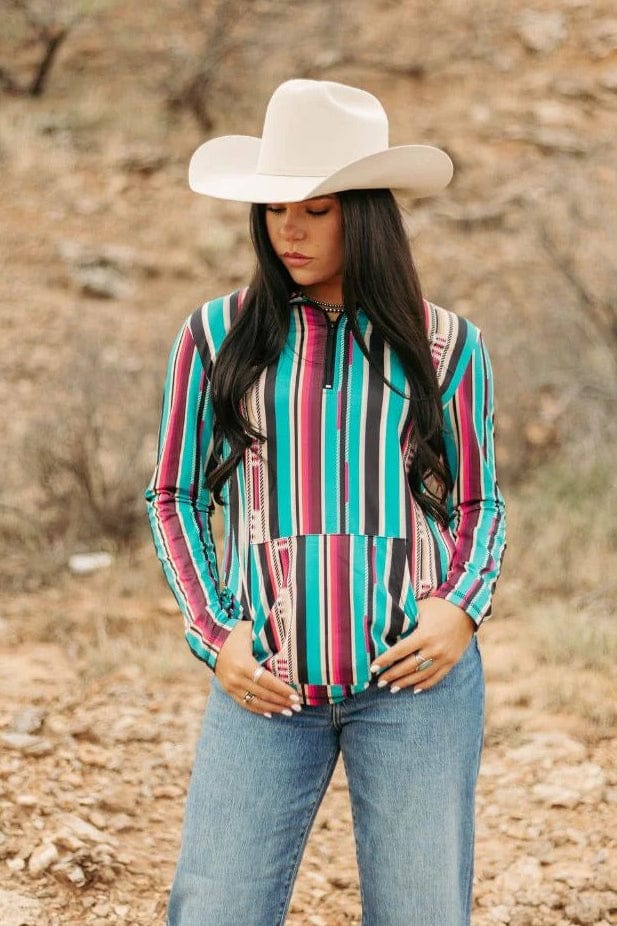 Take a stylish run with this colorful Running Away Pullover. Perfect for staying warm on the go with its cozy fabric. Add a pop of fun to your wardrobe with this playful serape print pullover.