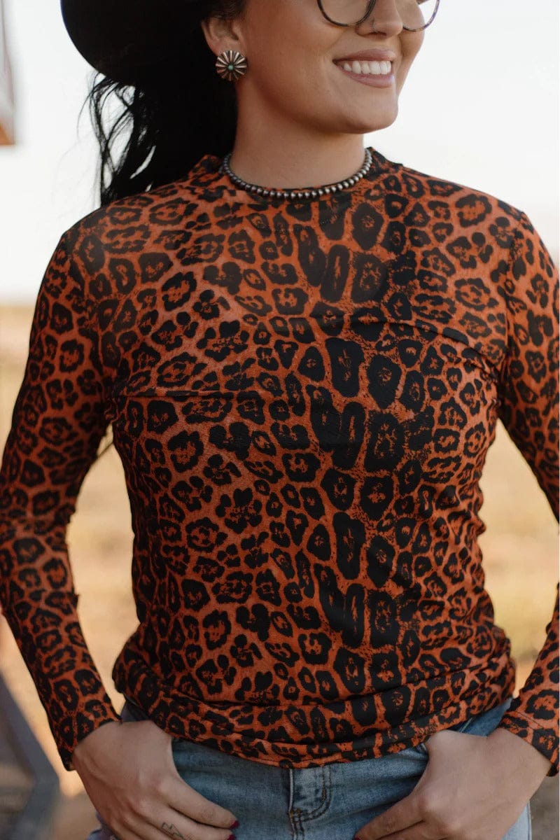 Elevate your game day look with the Sideline Spirit Orange Mesh Top. Crafted from breathable mesh fabric, this vibrant top keeps you cool and comfortable while showcasing your bold style. Its eye-catching leopard print orange hue makes it perfect for standing out in the crowd, whether you're cheering from the sidelines or heading out with friends. Combine comfort and spirited fashion effortlessly with this must-have addition to your wardrobe.