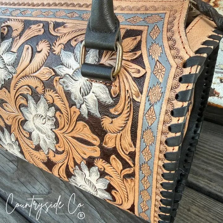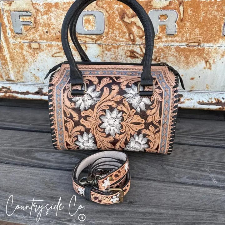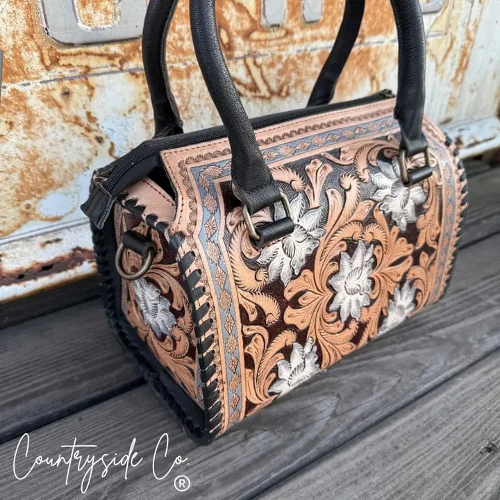 Meet the Stella Tooled Leather Speedy Bag, a Western statement piece that blends timeless craftsmanship with everyday practicality. Handcrafted from beautifully tooled leather and finished with hand-painted floral detailing, this bag brings rich texture, color, and artisanal character to your look.