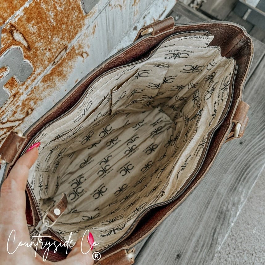 Inside, you’ll find a perfectly sized interior lined with the signature fabric from Countryside Co., along with side pockets and zippered compartments to keep your essentials organized and easy to find. Whether you’re carrying work must-haves, weekend treasures, or daily necessities, the Adeline keeps everything neatly in place without sacrificing style.