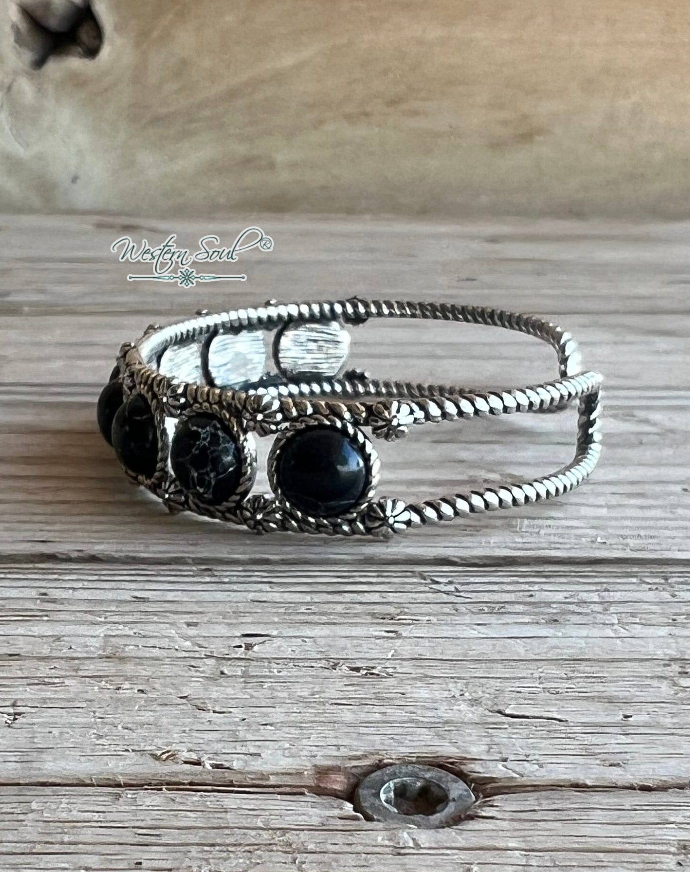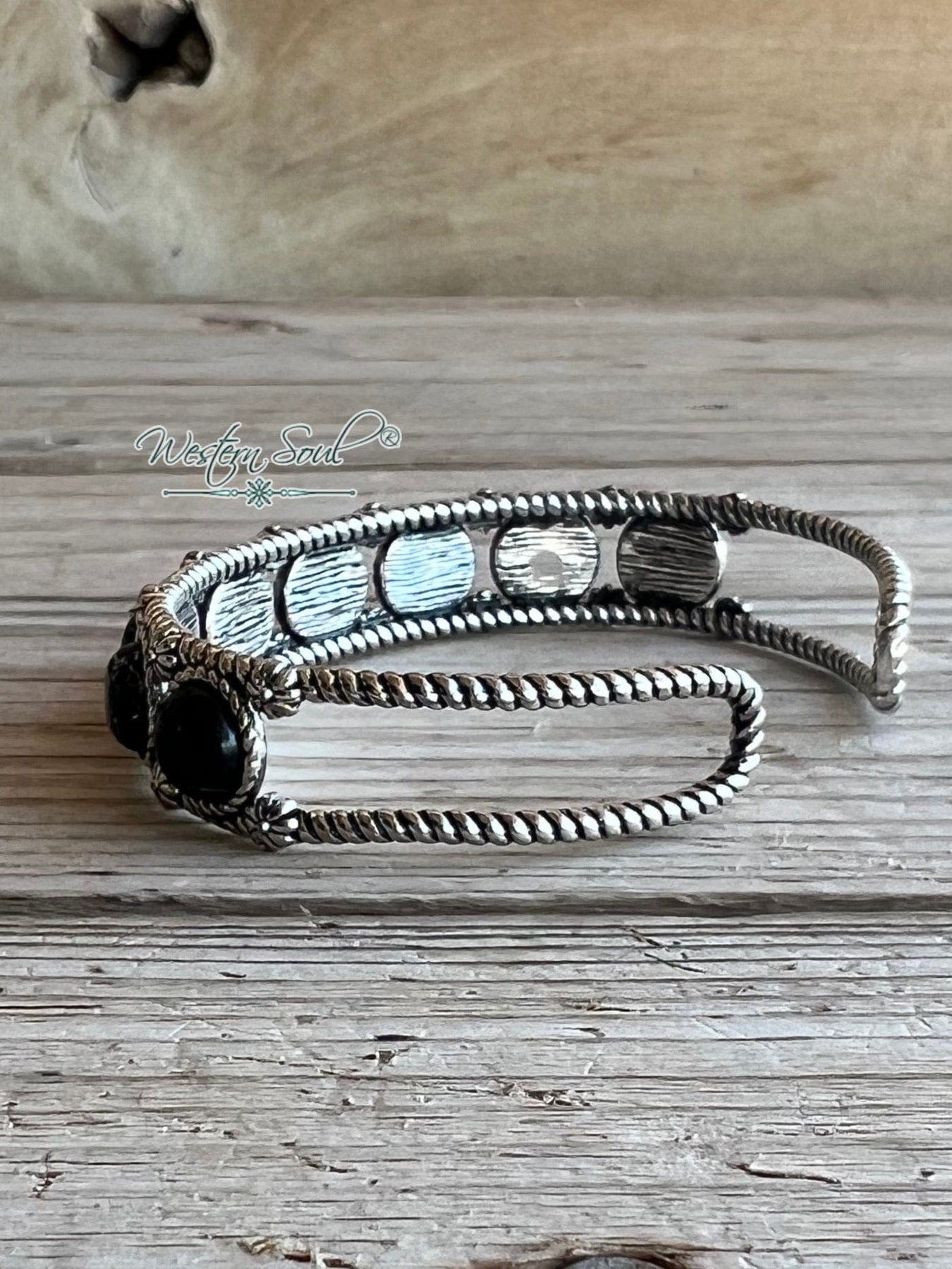 Upgrade your accessory game with our Western Rope Black Bracelet. Designed to add a touch of rugged Western charm, this statement piece is perfect for everyday wear or as a bold finishing touch to any outfit. Eye-catching and timeless, it’s an essential addition to your jewelry collection.